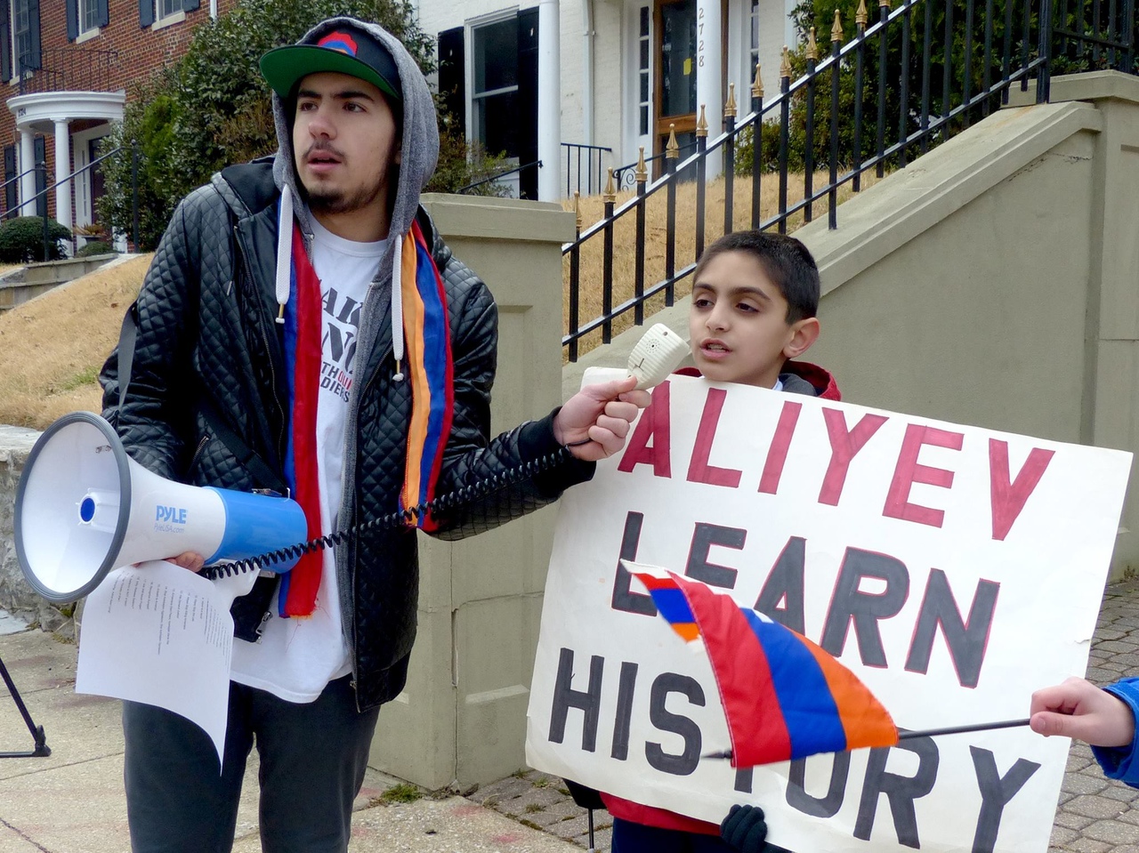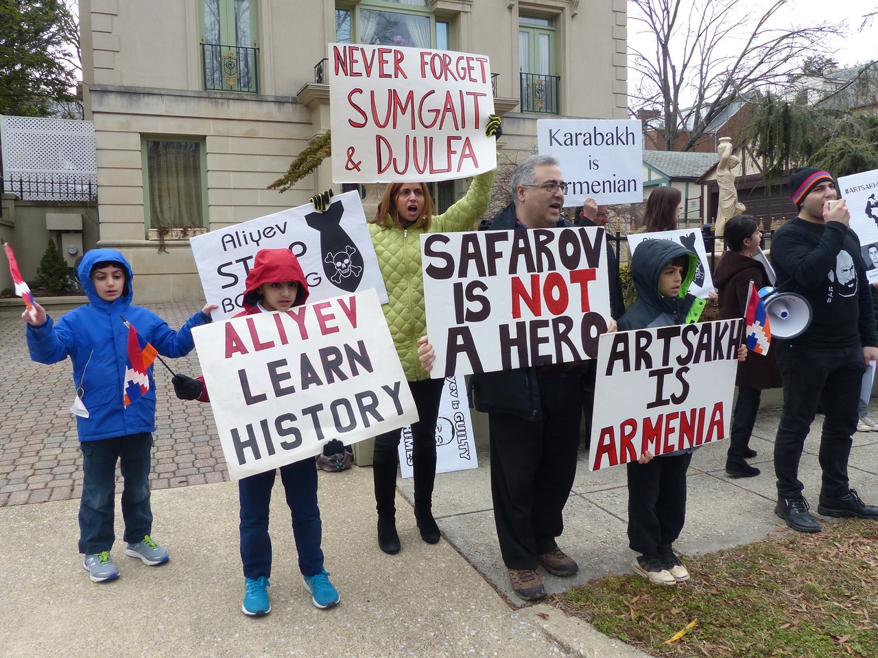 Представители Армянской молодежной федерации организовали акцию протеста около посольства Азербайджана в Вашингтоне, требую справедливости за погромы в Сумгаите, Кировабаде, Баку и Мараге в 1988-1992 гг.