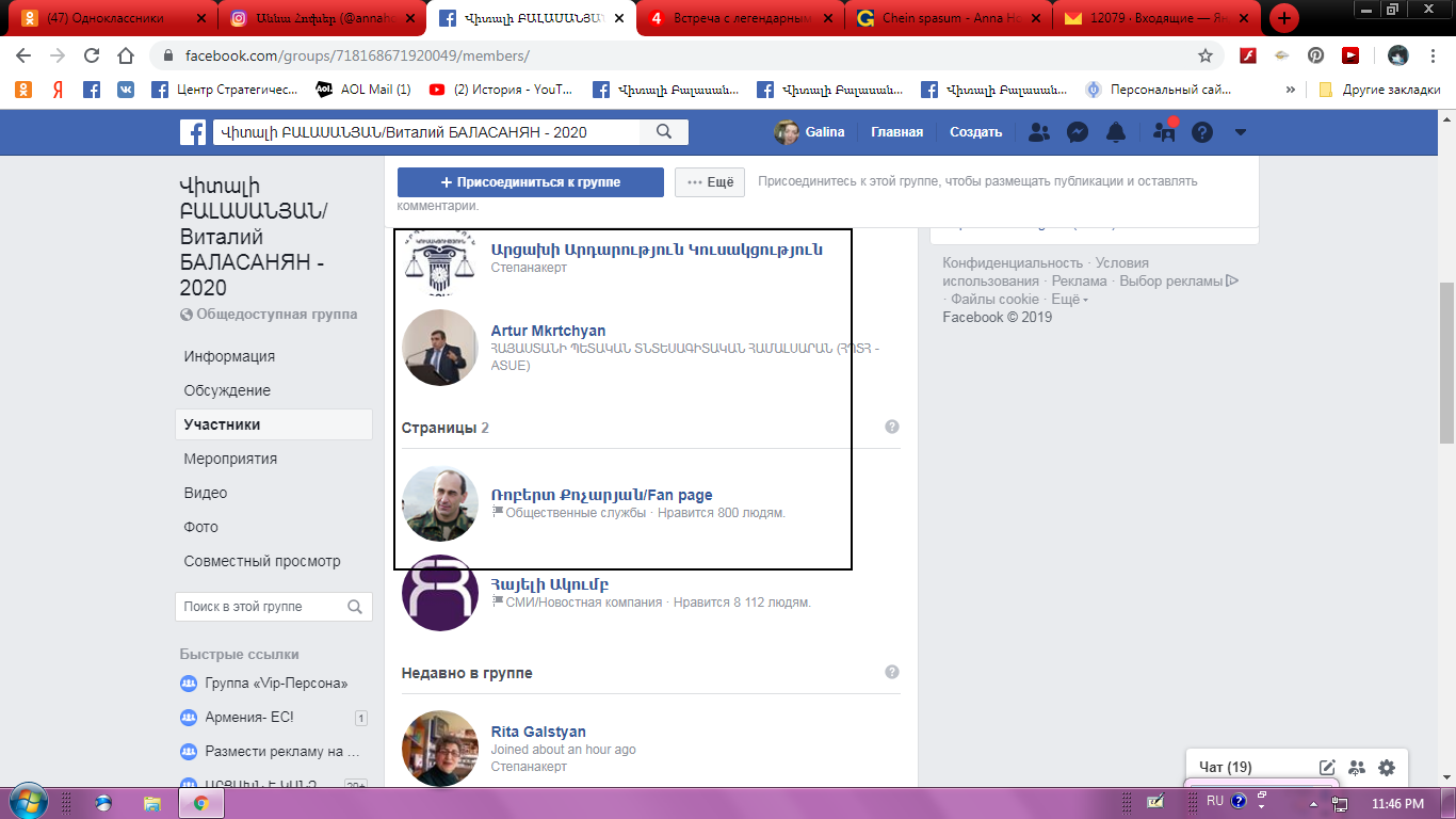 И еще.P.S.Пока готовился, материл. Нам позвонили и с неким умилением, видно пытаясь угодить ни то нам, ни то Овнер, что она ведет группу в поддержку Баласаняна, вот, мол, какая милость. Мы писали и говорили об этой, (И О ВАС УЗНАЕТ ВЕСЬ МИР…такой же про бывшей и пророс «группе». Но хотим повторить еще раз, это группа состоит из членов РПА, рос граждан и прокочаряновского военного крыла сил 90х и 2000 годов... И просто Фабрики троллей, «переезжающих» от одного генерала к другому, от одного кандидата к…И никакого отношения, к выборам в Арцахе и тем более к Баласаняну, как заявила нам недавно и сама владелица этого интернет-опуса, не имеет,… Да и в интернете столько грязи и вранья, что… В том числе и о Баласаняне… Пусть тешатся своим больным, как мы говорили не раз, самолюбием и воображением…Тем более, как сказал мой один хороший коллега из Степанакерта… Сейчас много провокаторов и спекулянтов вокруг этих выборов, 2020 года. И трудно не согласится. Однако мы хотим, все же, задать один вопрос к некоторым партиям Арцаха, а может и к вам имеет отношение эта группа?... Судя по фото, весьма и весьма возможно, или это просто чистая и простая случайность? Мы не хотим сие нечистоты рекламировать, но ради любопытства загляните туда, она теперь эта группа из закрытой превратилась в открытую.